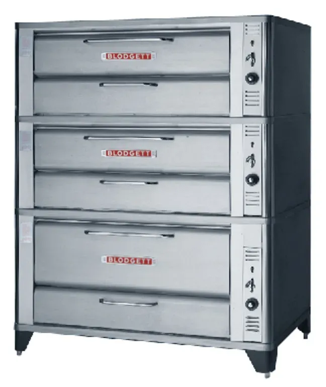 The Blodgett Deck Oven line has set industry wide standards for excellence in baking characteristics, performance and reliability. Simplicity of design and quality construction throughout assure years of trouble-free operation. Blodgett provides the strongest warranty in the business with a standard five-year door warranty! Creating endless possibilities with the Basic Four! The Blodgett large 900 Series gas deck ovens come in four basic sections. Each section has the same 60″ x 40″ footprint and can be stacked in any combination. The possibilities are endless. Separate heat controls for each section permit baking and roasting at different temperatures, simultaneously, in one oven! Blodgett’s Basic Four design gives you the ultimate in versatility, efficiency, and economy. 961-961-951 is two 961 ovens stacked on a 951 oven with a total of two 7” and one 12” high baking compartment and includes 7” s/s adjustable legs, stainless steel draft diverter or direct vent, crown angle trim and triple gas connector