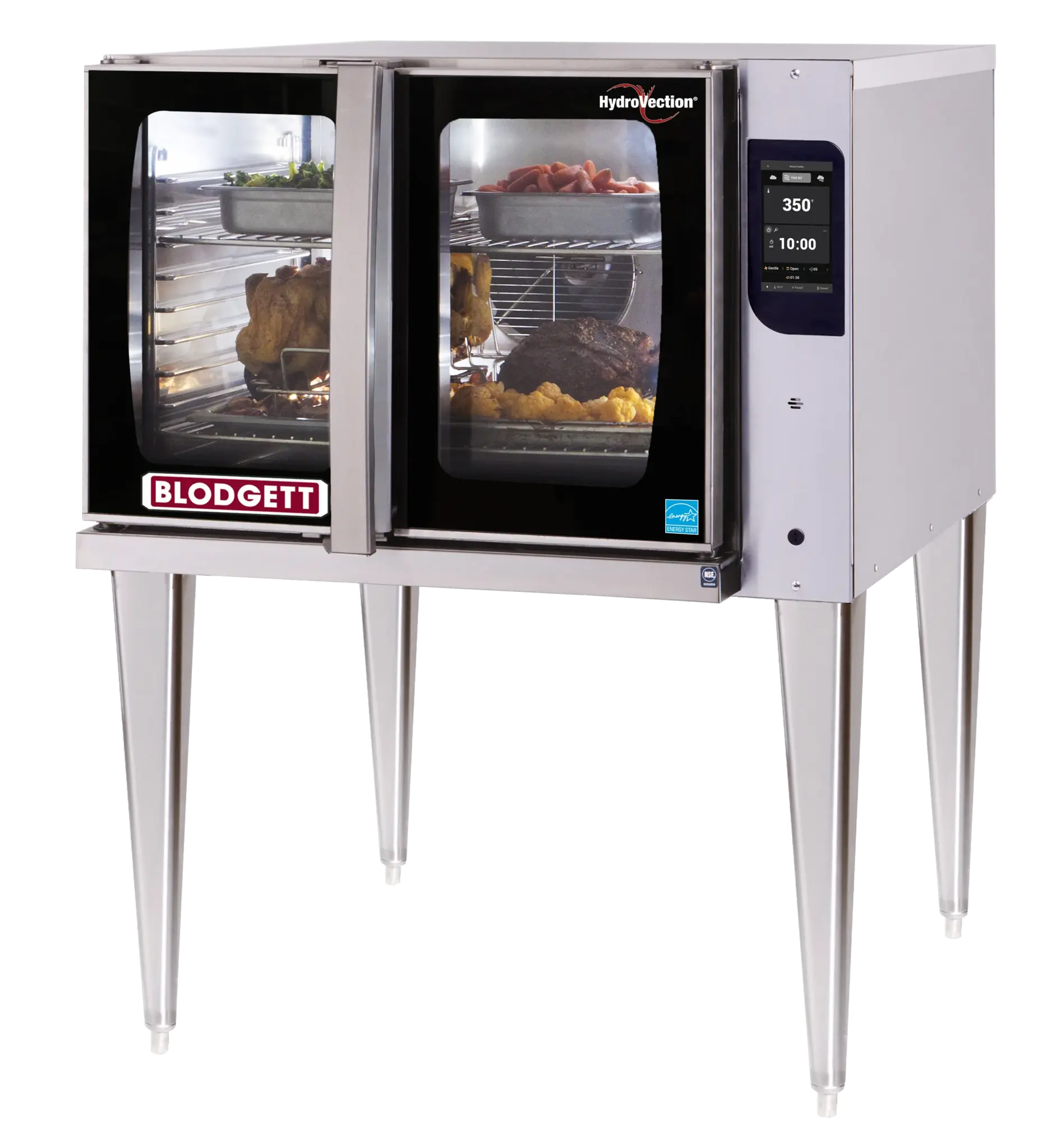 The Blodgett Hydrovection is the only split door, continuously humidified oven on the market. With its compact 38” footprint, the same as your convection oven, the Hydrovection saves space in your kitchen. The Hydrovection allows you to do more, bake, roast, gratinate, poach - in less space. Hydrovection, it’s practically a Combi at half the price! HVH Hydrovection ovens feature Blodgett’s patented Helix Technology which forces air into the oven cavity evacuating laden moisture, improving product quality while reducing cook times. Helix offers up to 30% faster cook times and 20% better yields on existing recipes. HVH-100GSGL is a single oven and includes 25” stainless steel legs