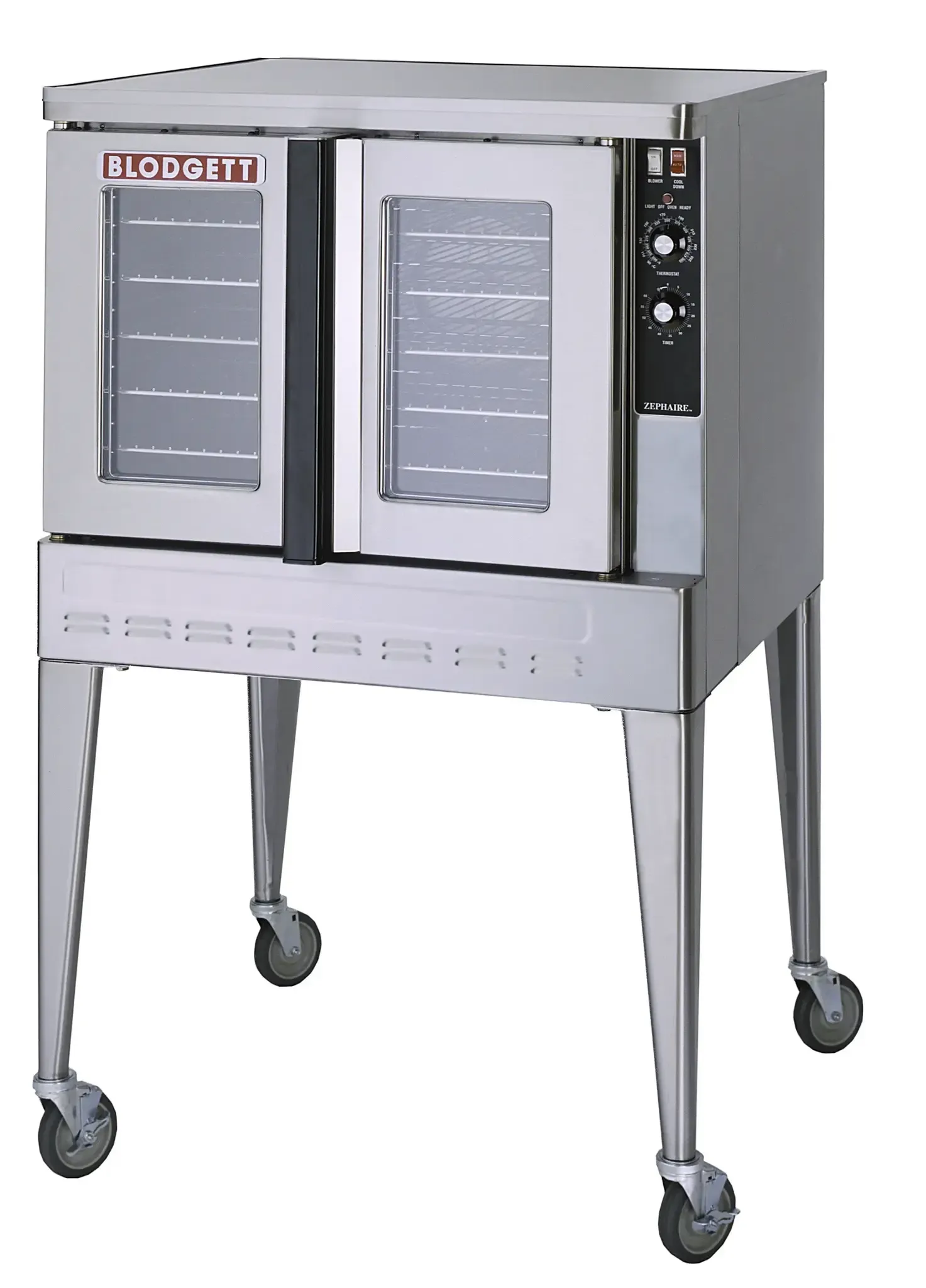 The Blodgett Zephaire Series convection ovens include all of the signature features that make Blodgett convection ovens reliable for years. The simple to use controls make Zephaire great for institutional kitchens. ZEPHAIRE-200-G-SGL is a single oven and includes 25” stainless steel legs