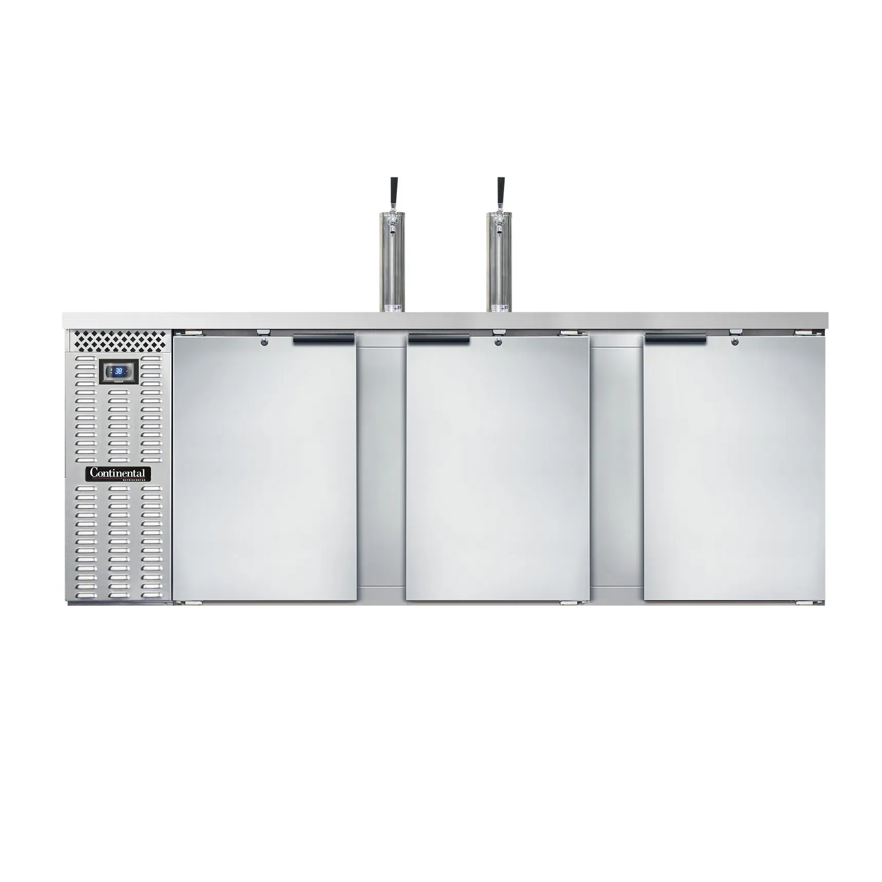Serve with pride with the Continental Refrigerator KC90SNSS Draft Beer Cooler. This top-of-the-line keg cooler is designed to meet the needs of commercial restaurants, ensuring that your customers are served the perfect draft beer every time. With a spacious 25.0 cu. ft. capacity, this cooler can hold up to four barrels or straight wall kegs, allowing you to offer a wide selection of beers to your patrons. The stainless steel top features two columns and a drainer, providing a convenient and hygienic space for pouring and serving. The electronic controller with a digital display and hi-low alarm ensures precise temperature control and alerts you if there are any issues. Made in the USA, this keg cooler is built to last with a reinforced stainless steel floor and self-contained refrigeration. With its sleek stainless steel exterior and galvanized interior, this cooler not only performs exceptionally but also adds a touch of sophistication to your establishment. Trust Continental Refrigerator for reliable and high-quality commercial refrigeration solutions.