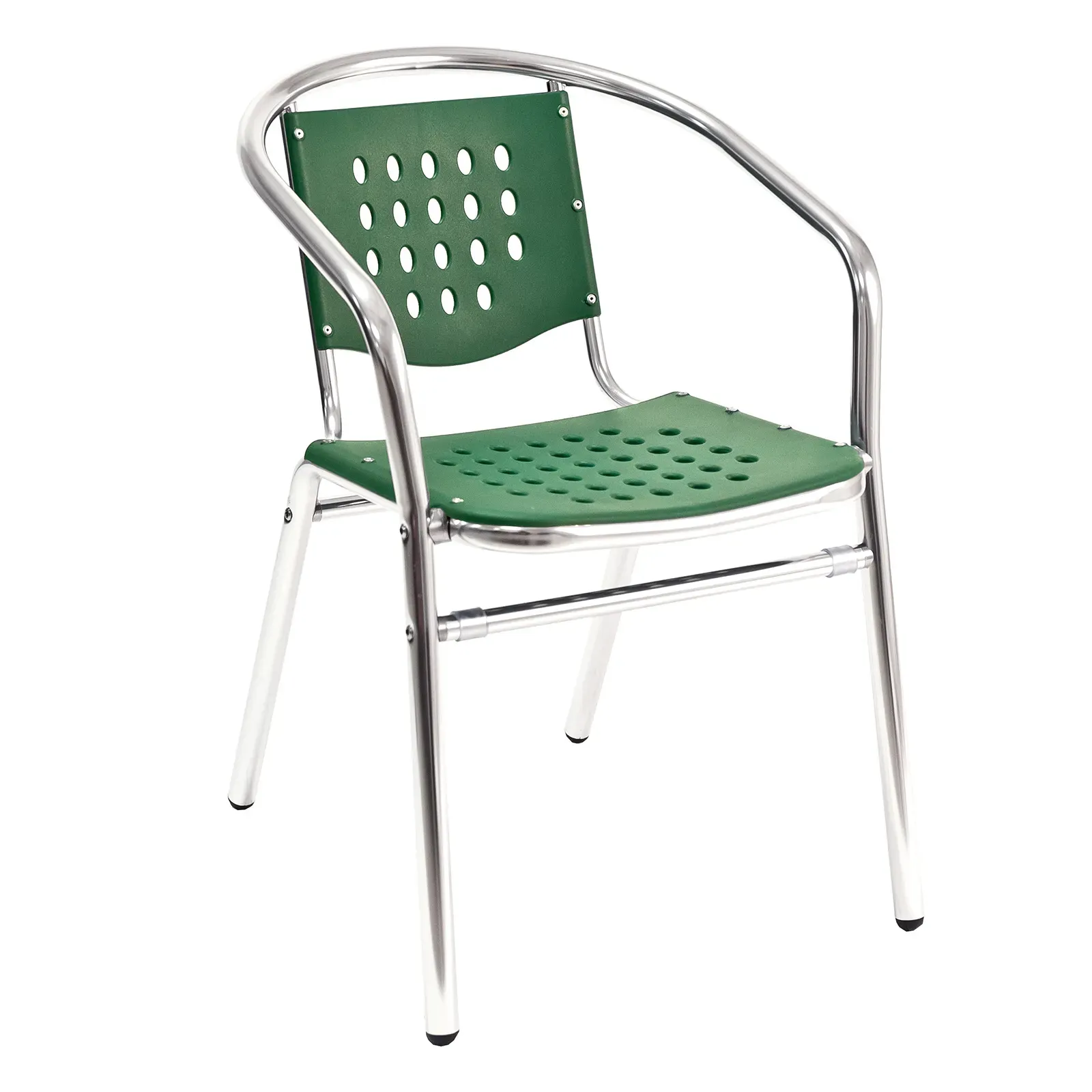 Adapt to diverse occasions with versatility using the Florida Seating AL-03 Chair. This armchair is designed specifically for outdoor use, making it perfect for commercial restaurants with outdoor seating areas. The chair features a polypropylene back and seat with holes, allowing for easy cleaning and quick drying after rain showers. The 1" diameter tubing frame provides sturdy support, while the anodized aluminum finish adds a sleek and modern touch. With its stackable design, this chair is easy to store when not in use, saving valuable space in your restaurant. The vibrant green color adds a pop of color to your outdoor dining area, creating an inviting and lively atmosphere for your guests. Trust Florida Seating, a reputable vendor in the industry, to provide you with high-quality and durable outdoor seating options.
