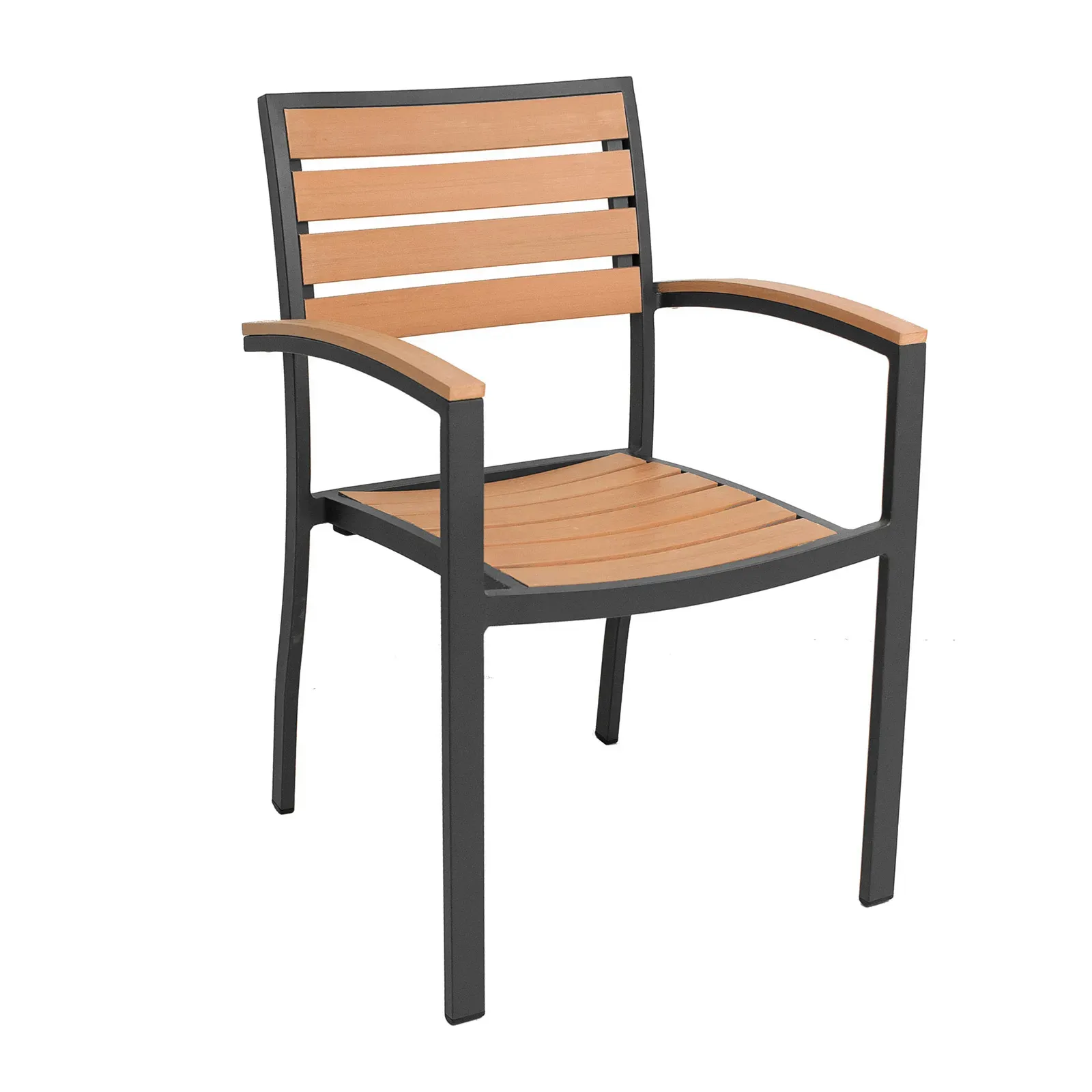 Enhance ambiance with stylish options using the Florida Seating AL-5602 Chair. This armchair is designed for outdoor use, making it perfect for commercial restaurants with outdoor seating areas. The faux teak ladder back and seat, along with the faux teak armrest, add a touch of elegance to any dining space. The stackable design allows for easy storage and efficient use of space. The box aluminum frame ensures durability and longevity, even in harsh weather conditions. Whether you're creating a cozy patio dining area or a trendy rooftop bar, the Florida Seating AL-5602 Chair is a versatile and stylish choice that will impress your customers and elevate your restaurant's atmosphere.