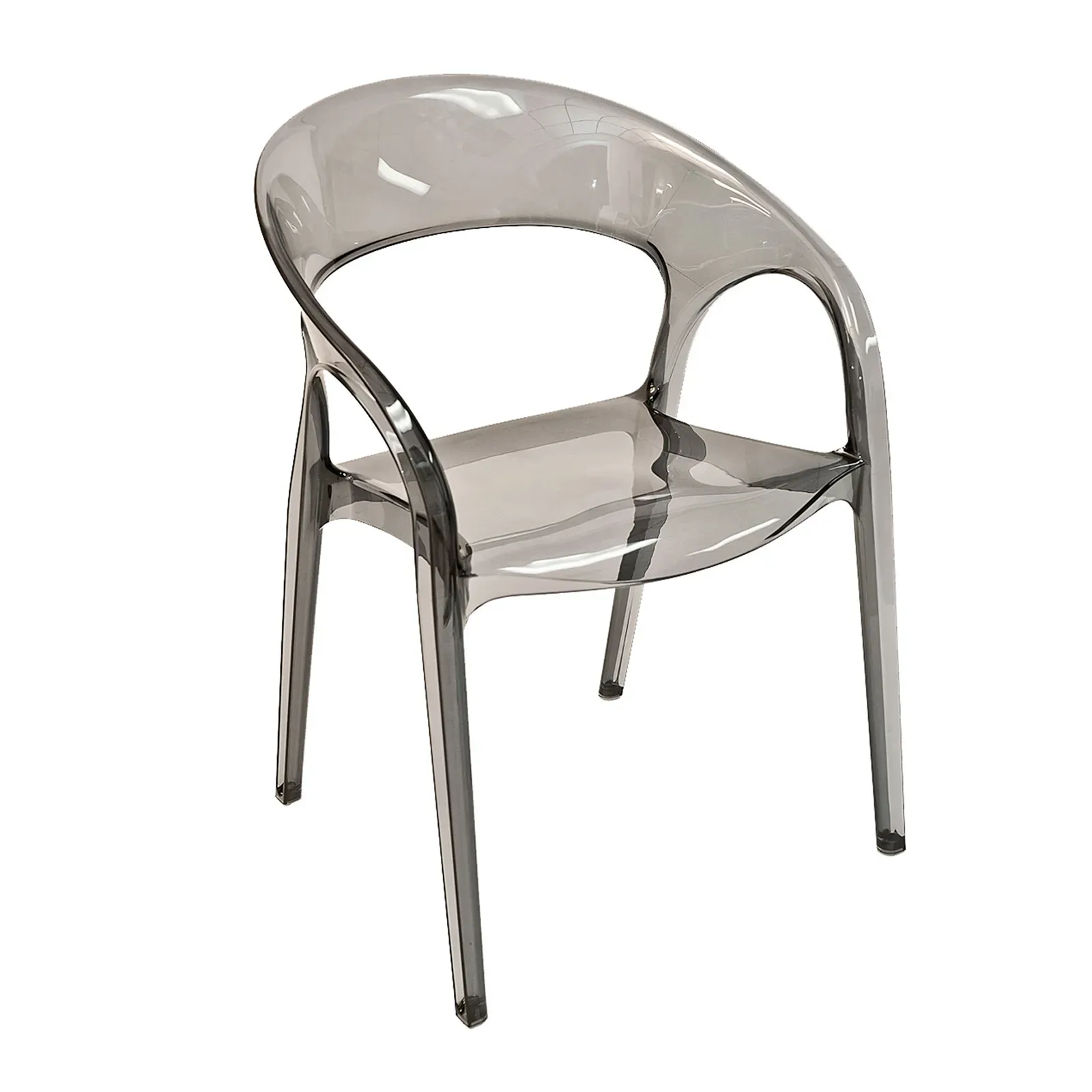 Craft adaptable spaces through thoughtful elements using the Florida Seating GOSSIP/SMOKE Chair. This armchair is designed for outdoor use, making it a perfect addition to any commercial restaurant setting. The chair features a molded injected polycarbonate construction that is not only durable but also UV resistant, ensuring its longevity even in direct sunlight. The smoke grey finish adds a touch of sophistication to any outdoor dining area. With its stacking design, this chair is easy to store and transport, allowing for flexible seating arrangements. Whether you're creating an intimate patio dining experience or a bustling outdoor bar area, the Florida Seating GOSSIP/SMOKE Chair is a versatile choice. Elevate your restaurant's ambiance and provide comfortable seating with this stylish and practical armchair.