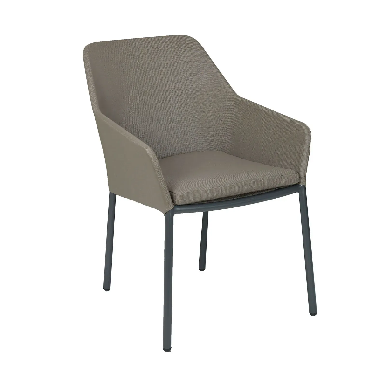Adapt to varying needs with versatile solutions using the Florida Seating, MADEIRA TAUPE, Chair, Armchair, Stacking, Outdoor. This armchair is designed to meet the demands of commercial restaurants, providing a stylish and functional seating option. The stackable design allows for easy storage and space optimization, making it ideal for establishments with limited space. The textilene seat, back, and arms offer durability and comfort, ensuring that guests can relax and enjoy their dining experience. The chair includes a cushion for added comfort, enhancing the overall dining experience. With a powder-coated aluminum frame, this chair is built to withstand outdoor and indoor use, making it suitable for any restaurant setting. Whether it's for outdoor patio seating or indoor dining areas, the MADEIRA TAUPE armchair is a reliable and attractive choice. Trust Florida Seating, a reputable vendor in the industry, to provide you with high-quality furniture that meets your restaurant's needs.