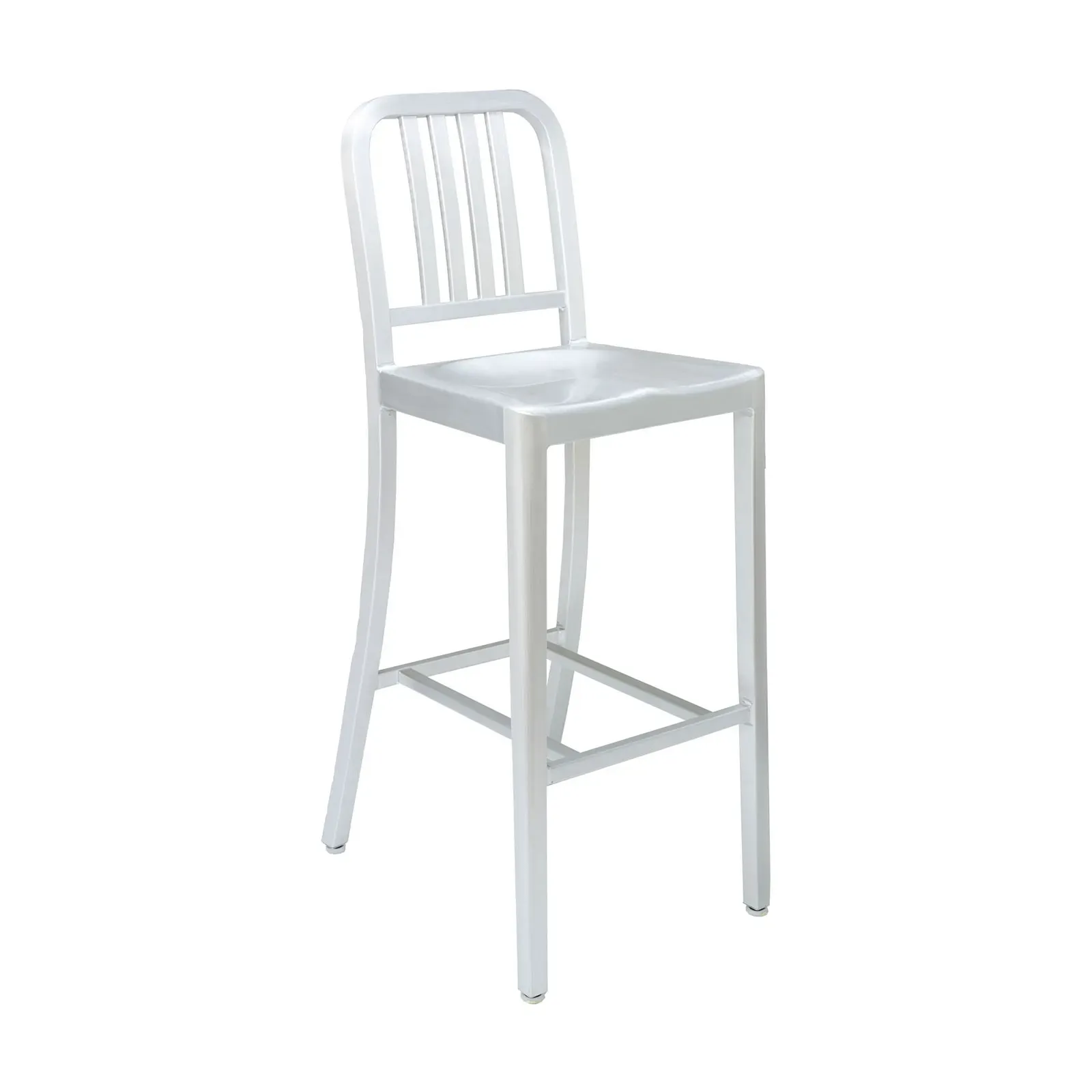 Welcome to the world of functional choices with Florida Seating's NAV-01B Outdoor Bar Stool. Designed specifically for commercial restaurant use, this bar stool combines style and durability to enhance any outdoor dining space. The armless design allows for easy movement and flexibility, while the metal vertical back provides optimal support and comfort. The metal saddle seat adds a touch of elegance, while the anodized aluminum frame ensures long-lasting performance. With a footrest for added convenience, this bar stool is perfect for customers looking to relax and enjoy their meals. The silver finish adds a sleek and modern touch, making it a versatile addition to any restaurant decor. Whether you're creating an outdoor patio or revamping your existing space, the NAV-01B Outdoor Bar Stool is the perfect choice for a stylish and functional seating solution.