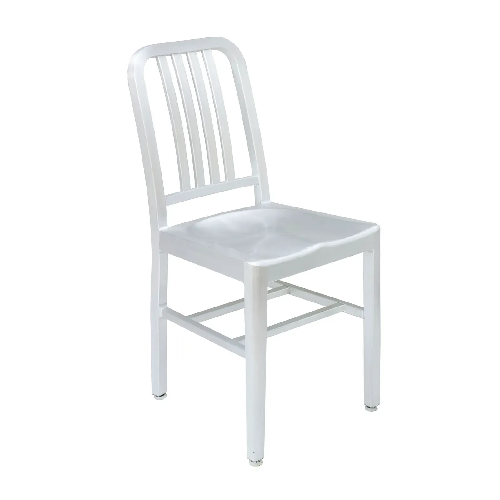 Facilitate easy socializing with strategically placed options using the Florida Seating NAV-01S Chair. Designed specifically for commercial restaurant use, this side chair combines style and functionality to enhance the dining experience. The chair features a sleek metal vertical back and a comfortable metal saddle seat, providing both support and comfort for guests. The anodized aluminum frame adds durability and a modern touch to any restaurant setting. With its silver finish, this chair effortlessly complements any decor theme. The NAV-01S Chair is packed individually by Florida Seating, ensuring quality and attention to detail. Whether used in a trendy cafe or a fine dining establishment, this chair is a versatile seating option that adds a touch of sophistication to any space. Elevate your restaurant's ambiance and create a welcoming atmosphere with the Florida Seating NAV-01S Chair.