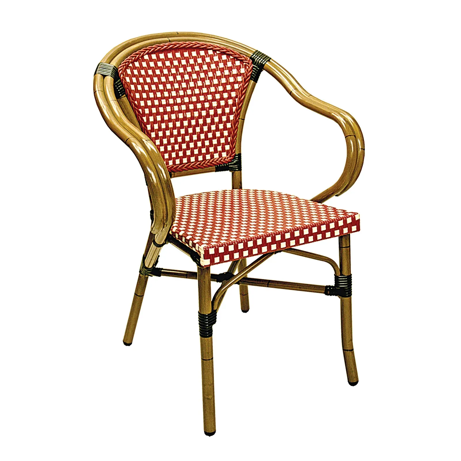Create comfort with curated choices using the Florida Seating RT-02 Armchair. Designed specifically for outdoor use, this stackable armchair is perfect for commercial restaurants looking to enhance their outdoor seating areas. The chair features a nylon weave back and seat, providing both durability and comfort for guests. The 1-1/2" diameter tubing frame ensures stability and support, while the UV-resistant aluminum construction with a hand-painted powder coat bamboo finish adds a touch of elegance to any outdoor space. With its stackable design, this armchair is easy to store and transport, making it ideal for restaurants with limited storage space. Whether you're creating a cozy patio dining area or a stylish rooftop bar, the Florida Seating RT-02 Armchair is the perfect choice for adding comfort and style to your commercial restaurant setting.