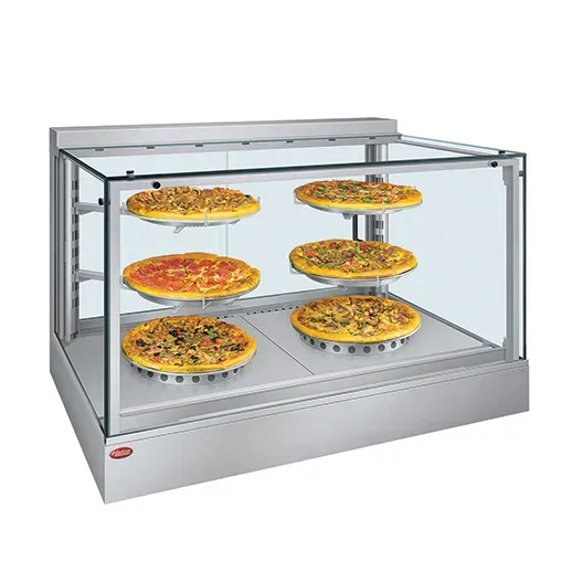 Unleash culinary creativity with the Hatco IHDCH-45 Display Cabinets. Designed for commercial restaurant use, this intelligent holding and display cabinet is a game-changer in food presentation. With its sleek stainless steel construction, it adds a touch of sophistication to any establishment. The cabinet features two glass sliding rear doors, allowing easy access to the displayed items. Four adjustable display arms provide flexibility in showcasing a variety of dishes. The LED interior lighting illuminates the food, making it even more enticing to customers. The LCD touchscreen controller and eight independent zone timers ensure precise temperature and humidity control, keeping your food at optimal conditions. The air circulation and humidity control system maintain the freshness and quality of your culinary creations. With a rear access USB port, you can easily update and customize the display content. Trust Hatco, a renowned vendor in the industry, and elevate your restaurant's food presentation with the IHDCH-45 Display Cabinets.