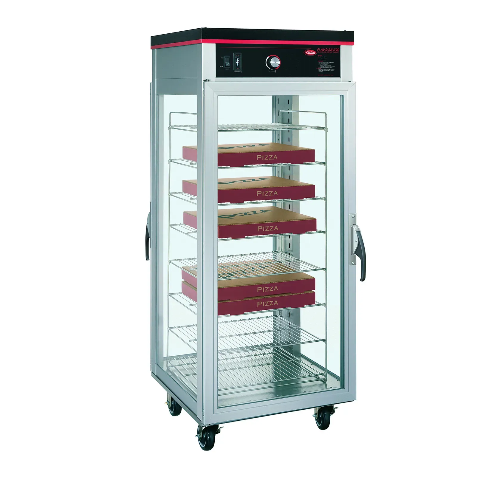 Cook with precision using the Hatco PFST-2X Display Cabinets. Designed by Hatco, a trusted vendor in the industry, this Flav-R-Savor Tall Dry Holding Cabinet is perfect for commercial restaurant use. With its pass-thru design and two doors, it offers easy access to your food items. The cabinet features an eight-shelf rack with 5" centers, providing ample space to hold up to 16 boxed or 8 bagged pizzas. The latching handle ensures secure closure, while the 5" locking casters allow for easy mobility. Made in the USA and cULus and UL EPH Classified, this cabinet guarantees quality and safety. Its dimensions of 57" in height, 22.88" in width, and 27.25" in depth make it a compact yet spacious addition to your kitchen. Trust Hatco's PFST-2X Display Cabinets to keep your food hot and ready for your customers.