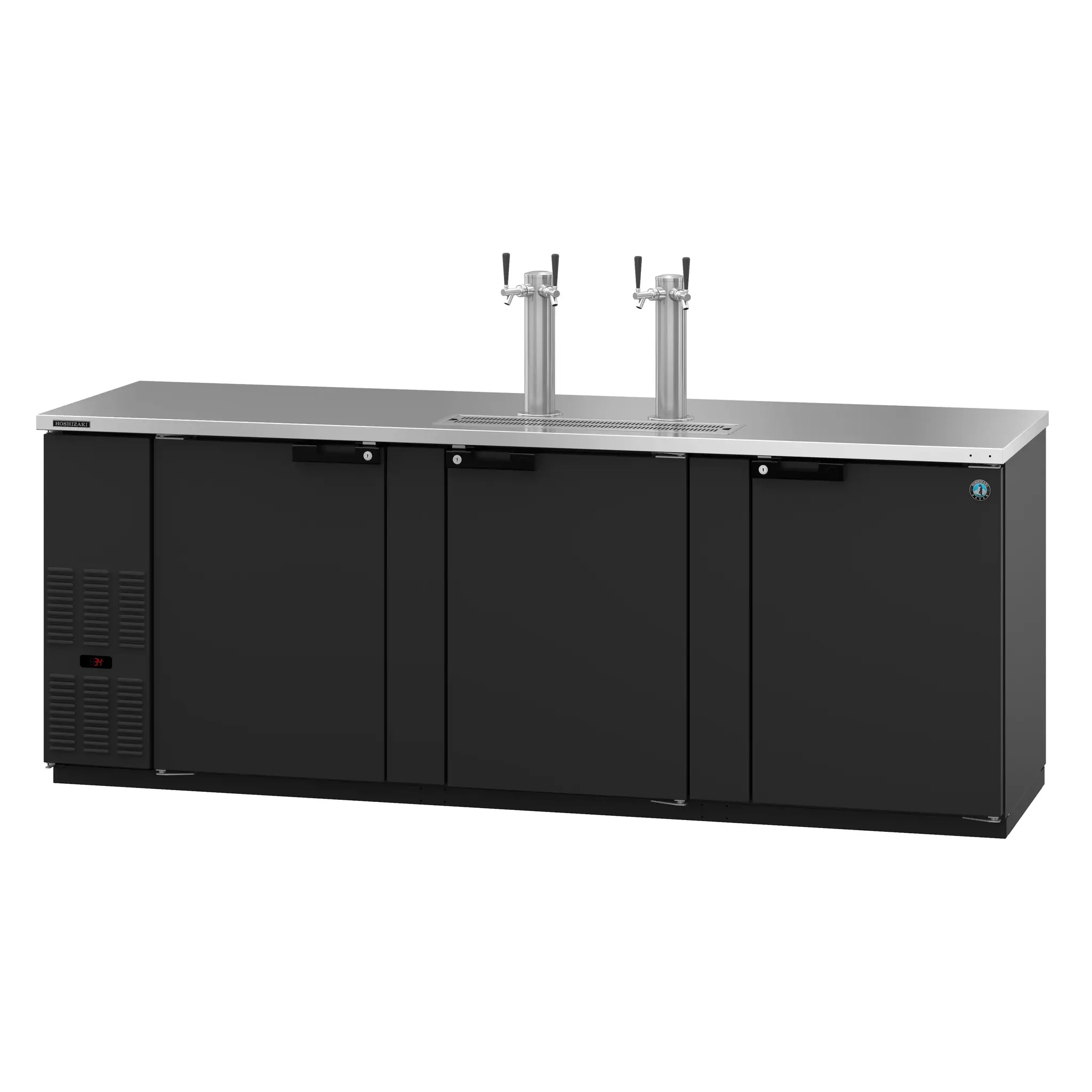 The durable stainless steel interior with led lights and thick stainless steel threshold protects door frame when loading and unloading cabinet. While the black vinyl exterior front, sides and rear, plus a 18 gauge stainless steel top will endure many busy years! The DD95 fits: (5) 1/2 barrels (keg), and (2) polished stainless steel insulated towers with (4) plated brass faucets, it also features electronic controller with led display (°f or °c). Optional kits: (-S) stainless steel exterior - Made to Order. Cabinet fits: (5) 1/2 barrels, or (12) slim 1/4 barrels, or (17) 1/6 barrels, or (1) 1/2 barrel and (4) slim 1/4 barrel and (7) 1/6 barrels. The unit is ETL Safety (US & C) Listed, ETL Sanitation and includes a five years compressor warranty / three years parts and labor warranty.