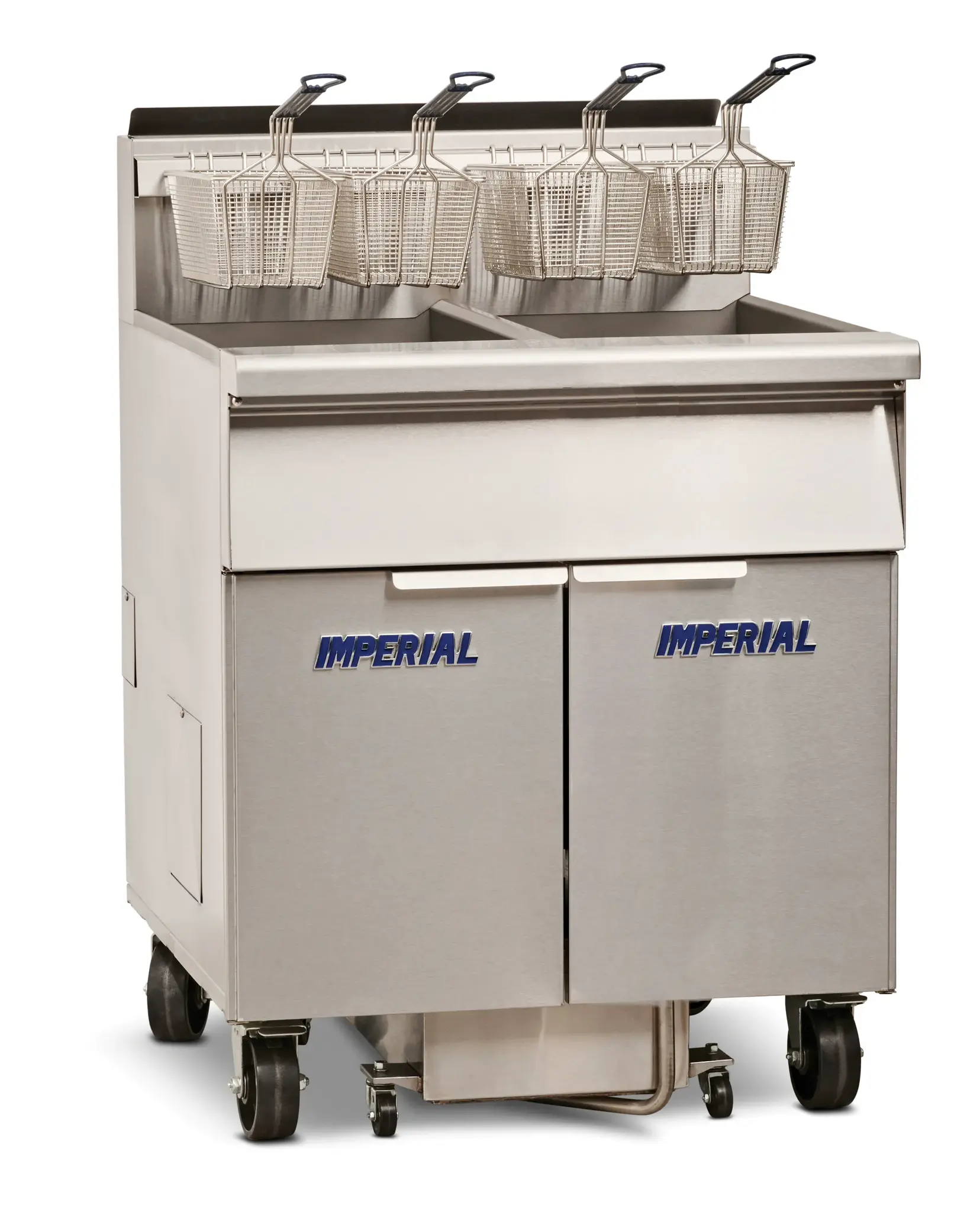 Optimize your kitchen efficiency with the Imperial, IFSSP250, Fryer, Gas, Multiple Battery. This floor model fryer is designed to meet the demands of a busy commercial restaurant. With a 50lb. capacity in each of its (2) batteries, you can fry large quantities of food at once, saving you time and increasing productivity. The built-in space saver filter system ensures that your oil stays clean and extends its lifespan, reducing costs. The 5.5 GPM roller pump and snap action thermostat provide precise control over the frying process, ensuring consistent and delicious results every time. The stainless steel frypot, front, and sides are not only durable but also easy to clean, maintaining a hygienic kitchen environment. With casters for easy mobility and various certifications including CSA Flame, CSA Star, NSF, and CE, this fryer is a reliable and safe choice for any commercial kitchen. Upgrade your frying capabilities with the Imperial, IFSSP250, Fryer, Gas, Multiple Battery.