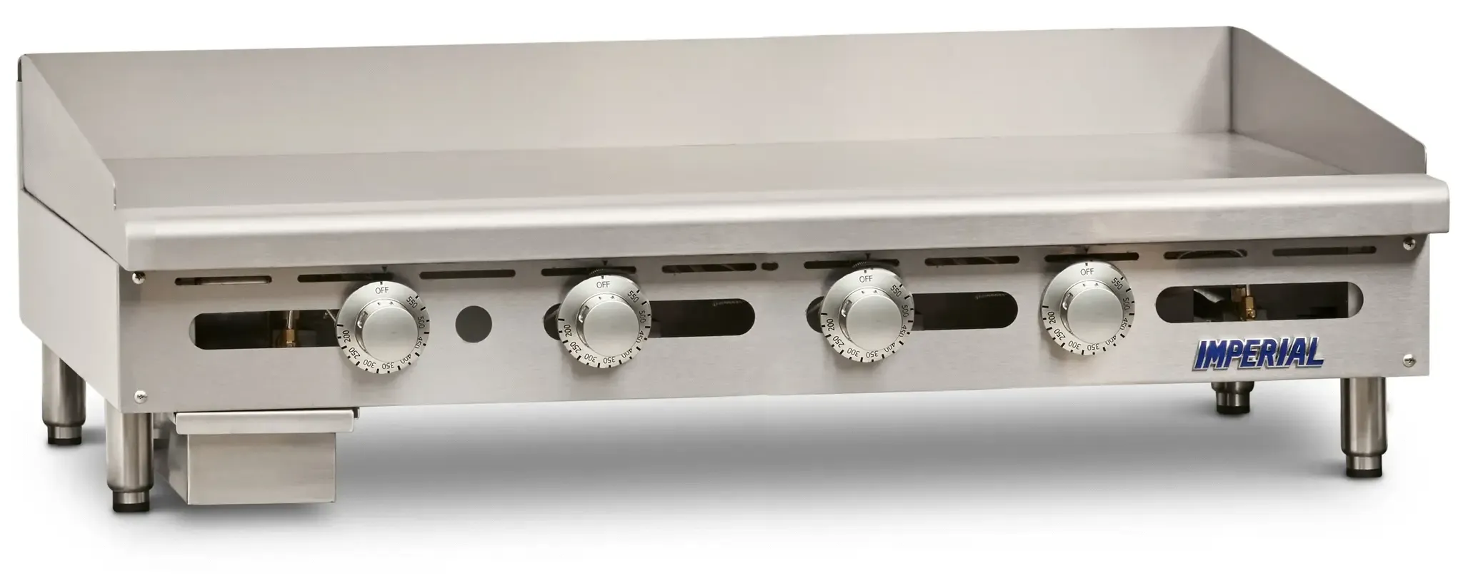Unleash gastronomic brilliance with the Imperial ITG-48 Gas Countertop Griddle. Designed for commercial restaurant use, this griddle is a game-changer in the kitchen. With a spacious 48" W x 24" D cooking surface, you'll have plenty of room to cook up a storm. The 1" thick polished steel plate ensures even heat distribution, while the thermostatic controls allow for precise temperature adjustments. The 4" wide front grease trough and removable grease can make cleaning a breeze, keeping your kitchen running smoothly. Made with stainless steel front, sides, splash guards, and ledge, this griddle is built to withstand the demands of a busy restaurant. With 120,000 BTU of power, this griddle delivers exceptional performance. Trust in the quality and reliability of Imperial, a trusted name in commercial kitchen equipment. Upgrade your restaurant's cooking capabilities with the Imperial ITG-48 Gas Countertop Griddle.