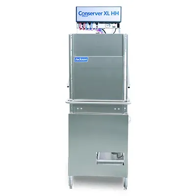 Elevate standards with modern solutions using the Jackson WWS CONSERVER XL HH Dishwasher. Designed specifically for commercial restaurant use, this high-quality dishwasher is a game-changer in the industry. With its higher hood door-type and universal (straight-thru/corner) type, it offers versatility and convenience for any kitchen layout. The low temperature chemical sanitizing ensures thorough cleaning while maintaining food safety standards. This dishwasher can handle approximately 39 racks per hour, making it perfect for high-volume establishments. Equipped with three built-in chemical pumps and priming switches, it simplifies the dishwashing process and ensures consistent results. The built-in scrap accumulator and removable screen prevent clogs and keep the machine running smoothly. The stainless steel construction guarantees durability and easy maintenance. With a 1 HP wash pump and adjustable stainless steel bullet feet, this dishwasher delivers powerful performance and stability. Trust the Jackson WWS CONSERVER XL HH Dishwasher to meet your restaurant's demanding needs and exceed your expectations.