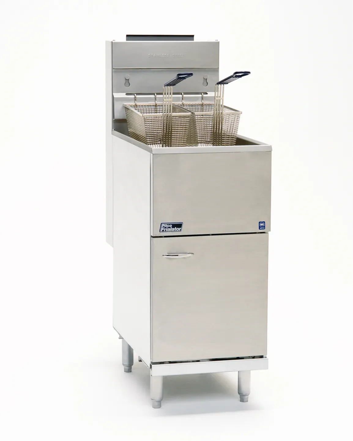 Stainless steel construction with cast iron burners. Removable basket hanger. 14 x 14 inch cook area. Up to 50lbs oil capacity. Millivolt ignition control for gas fryers, no need for external electricty source.